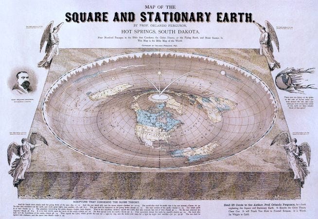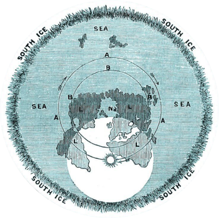 Today’s flat-Earth believers are not, though, the first to doubt what seems unquestionable. The notion of a flat Earth initially resurfaced in the 1800s as a backlash to scientific progress, especially among those who wished to return to biblical literalism. Perhaps the most famous proponent was the British writer Samuel Rowbotham (1816–1884). He proposed the Earth is a flat immovable disc, centred at the North Pole, with Antarctica replaced by an ice wall at the disc’s outer boundary.