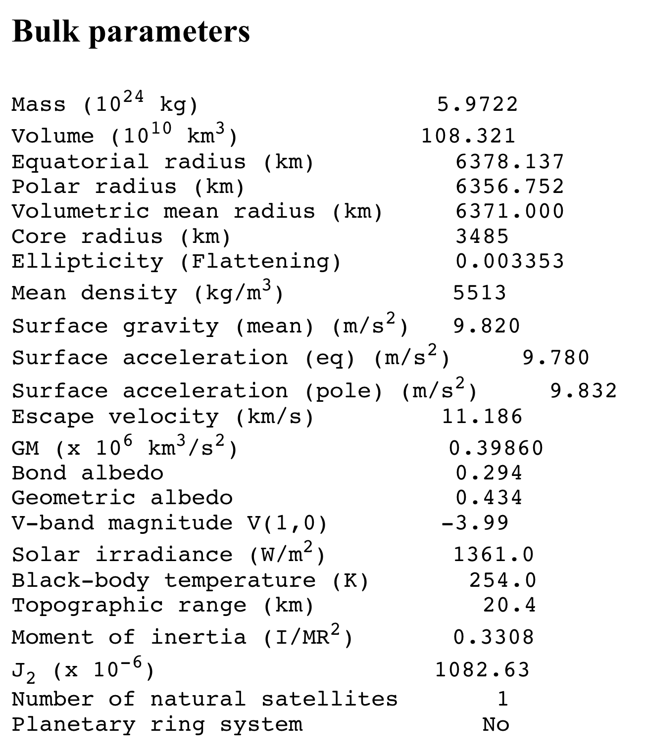Source: https://nssdc.gsfc.nasa.gov/planetary/factsheet/earthfact.html